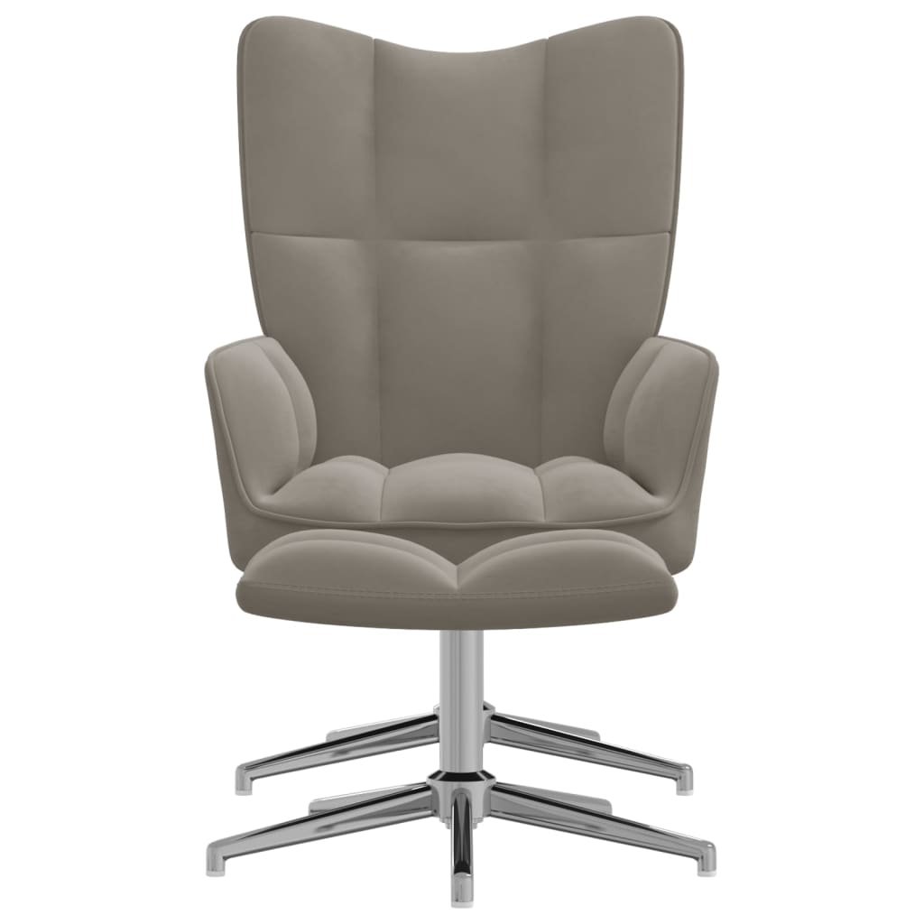 Scaun de relaxare cu taburet, gri deschis, catifea GartenMobel Dekor