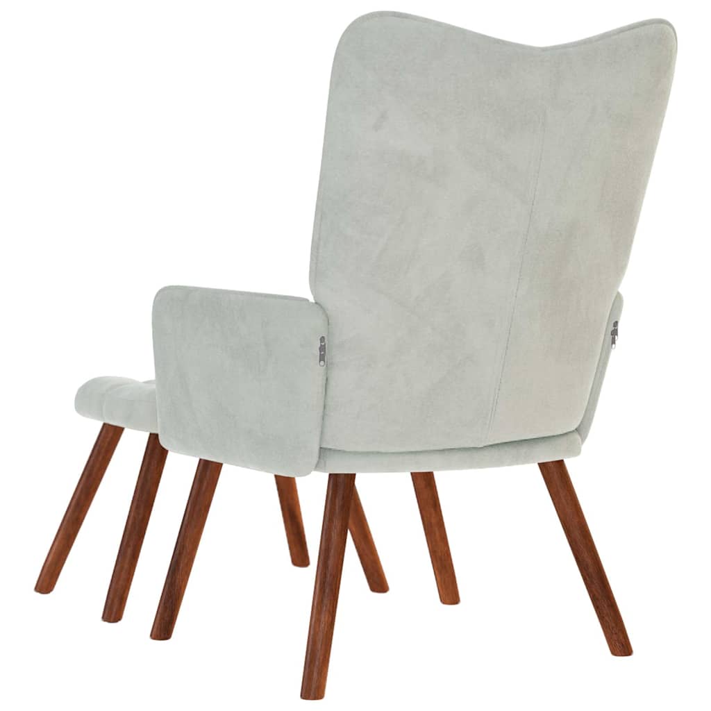 Scaun de relaxare cu taburet, gri deschis, catifea GartenMobel Dekor