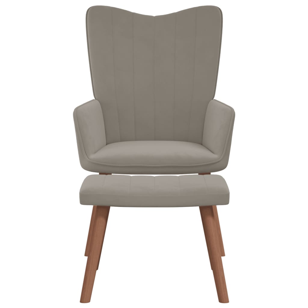 Scaun de relaxare cu taburet, gri deschis, catifea GartenMobel Dekor