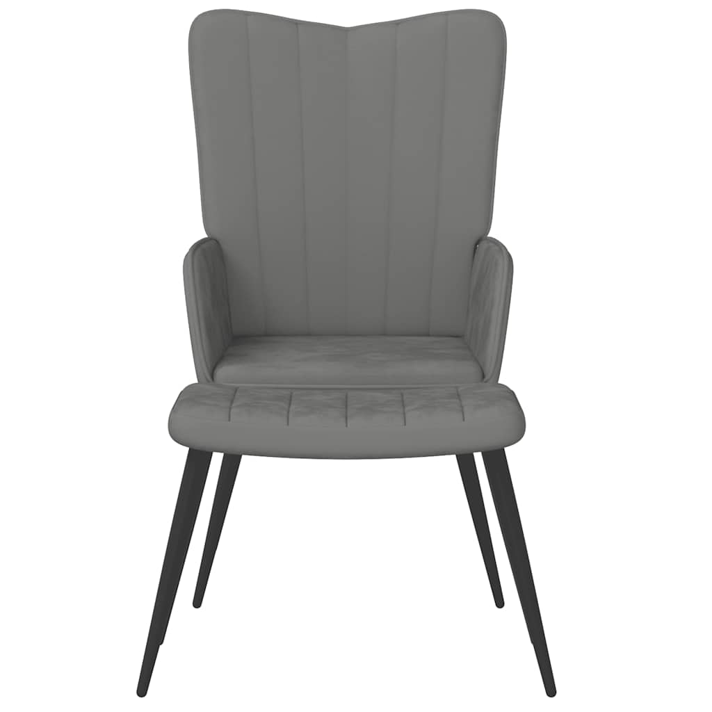 Scaun de relaxare cu taburet, gri închis, catifea GartenMobel Dekor