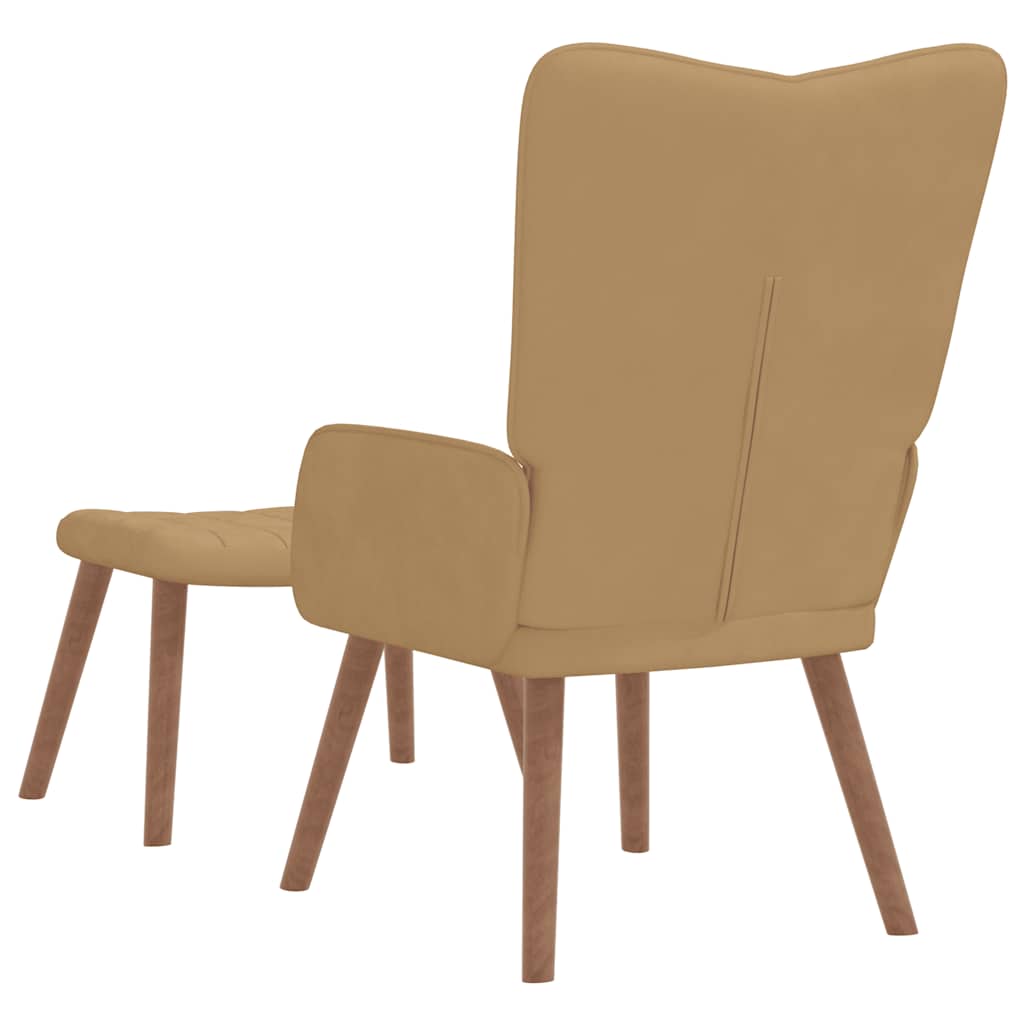 Scaun de relaxare cu taburet, maro, catifea GartenMobel Dekor