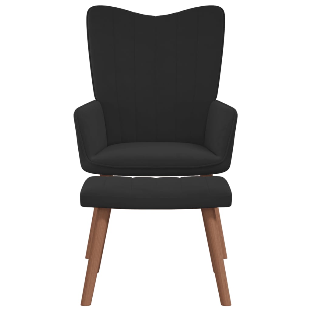 Scaun de relaxare cu taburet, negru, catifea GartenMobel Dekor