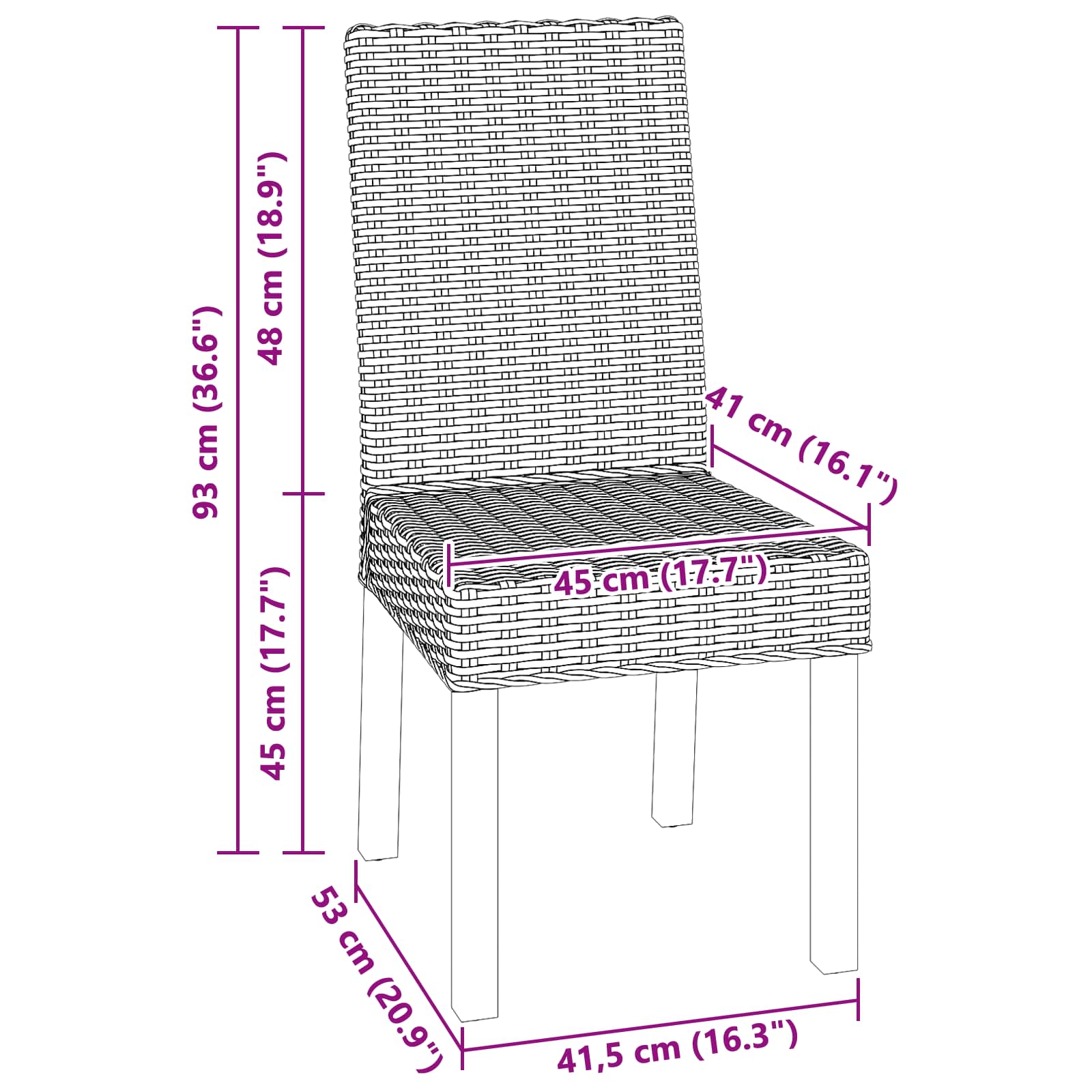 Acest set de scaune de dining combină estetica modernă cu practicitatea, îmbunătățind ușor orice spațiu, fie că e vorba de living sau bucătărie. Cu linii curate și un stil minimalist, aceste scaune oferă un aspect elegant. Ratanul împletit aduce un pic de natură, iar cadrul din lemn de mahon adaugă stabilitate. Sunt perfecte pentru cine intime sau întâlniri despre veselie, iar designul lor încurajează relaxarea și socializarea.
