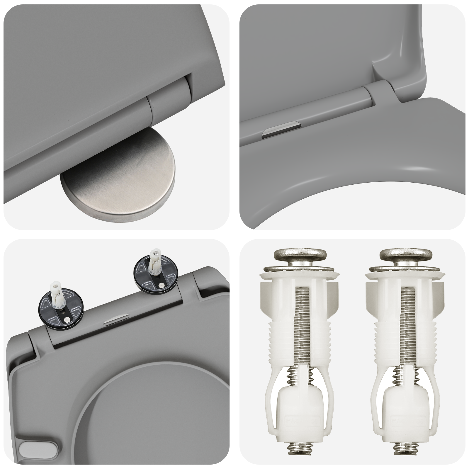 Scaun de toaletă cu eliberare rapidă cu închidere lentă Duroplast Gri GartenMobel Dekor