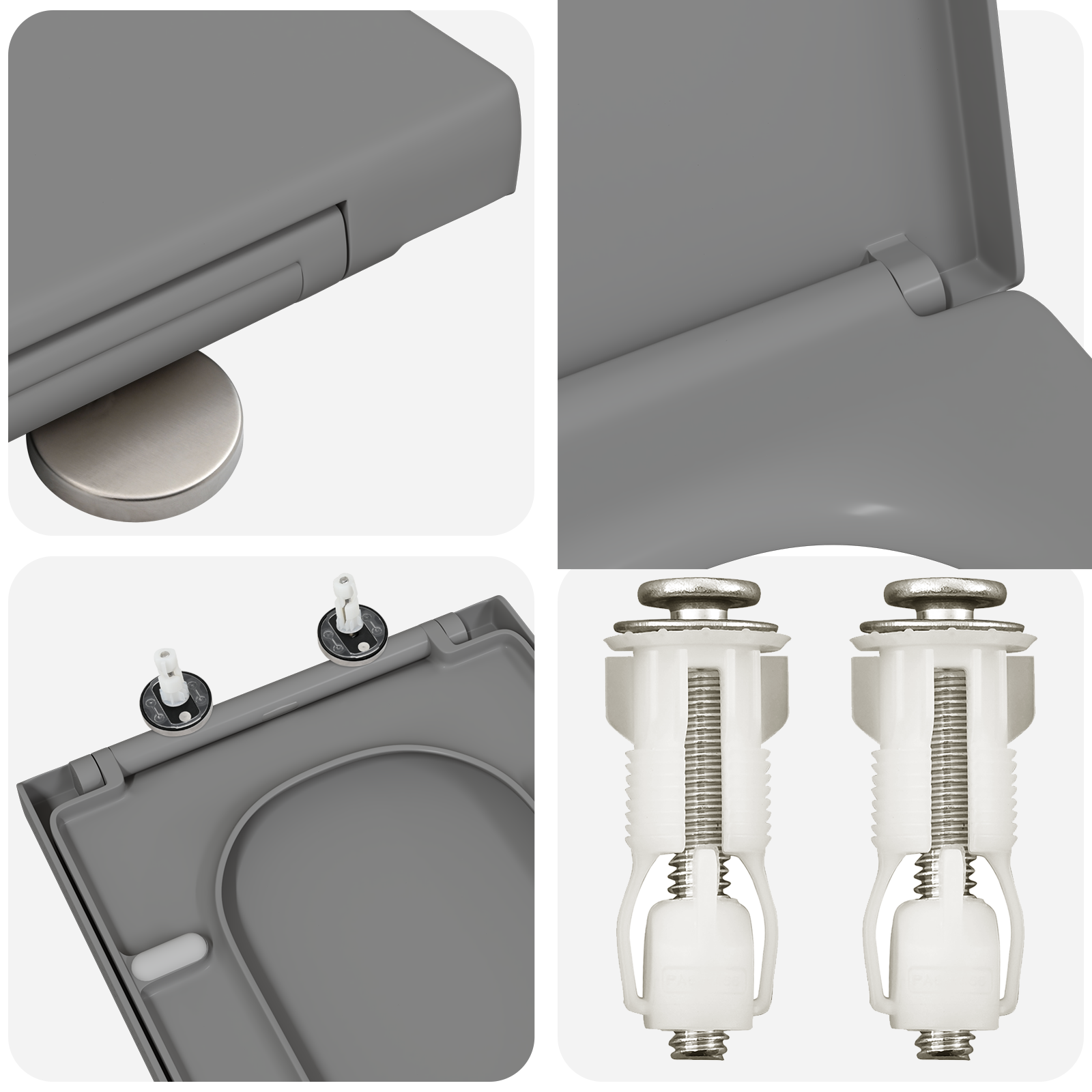 Scaun de toaletă cu fixare rapidă și închidere lentă Duroplast Gri GartenMobel Dekor