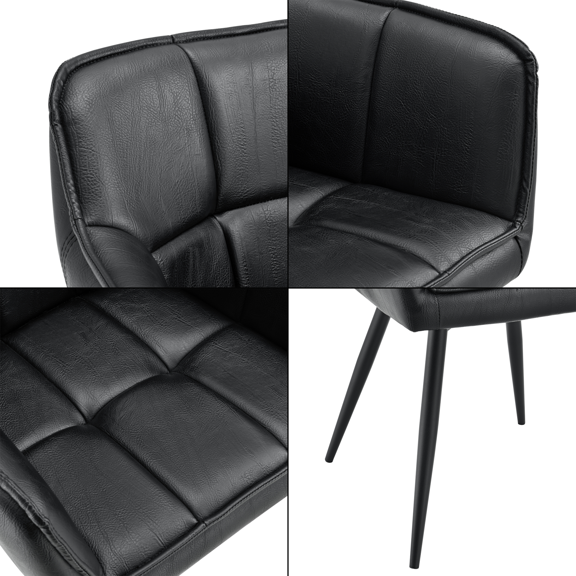 Șezutul moale și brațele laterale oferă o poziție comodă la masă, fie că iei cina în familie, lucrezi de acasă sau primești invitați. Picioarele din oțel vopsit în câmp electrostatic asigură stabilitate foarte bună și utilizare de durată, iar tapițeria din piele ecologică este ușor de întreținut în viața de zi cu zi.