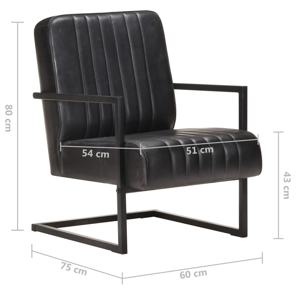 Scaun fotoliu tip consolă, negru, piele naturală GartenMobel Dekor