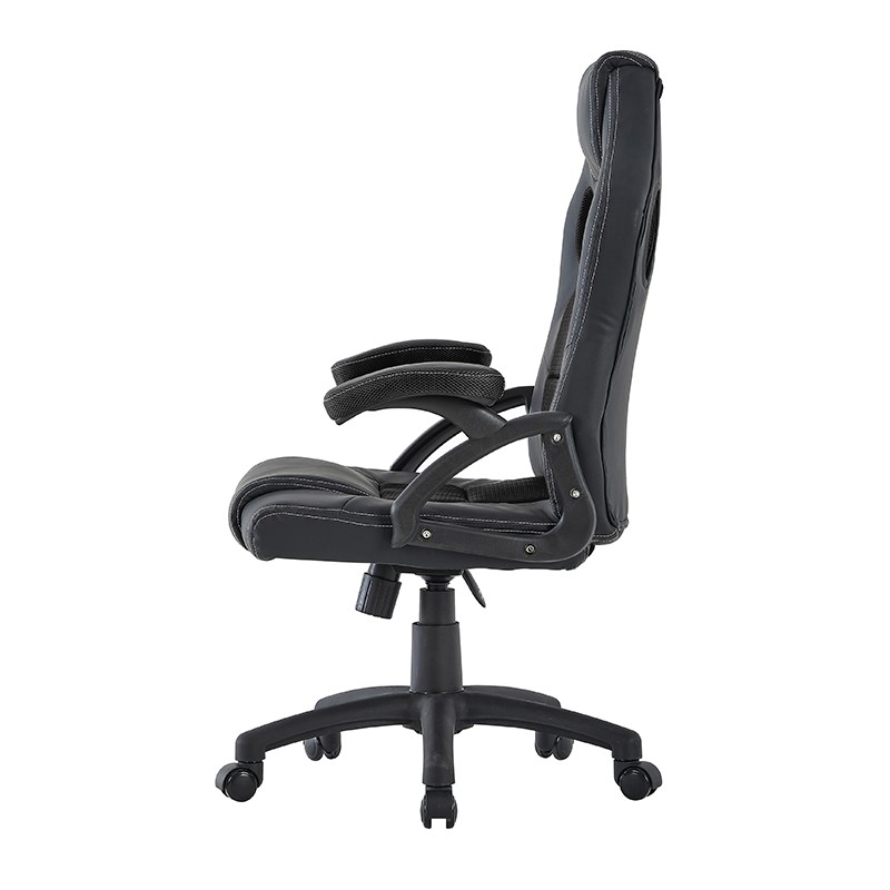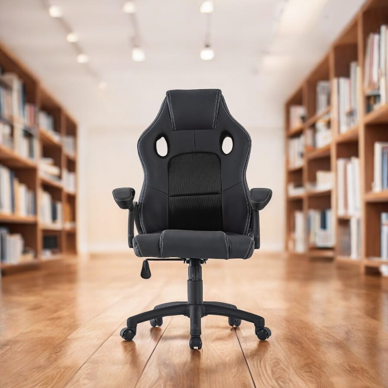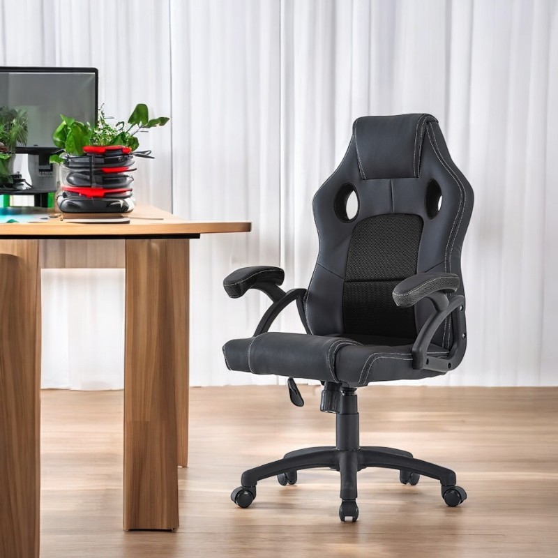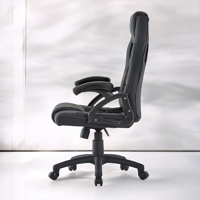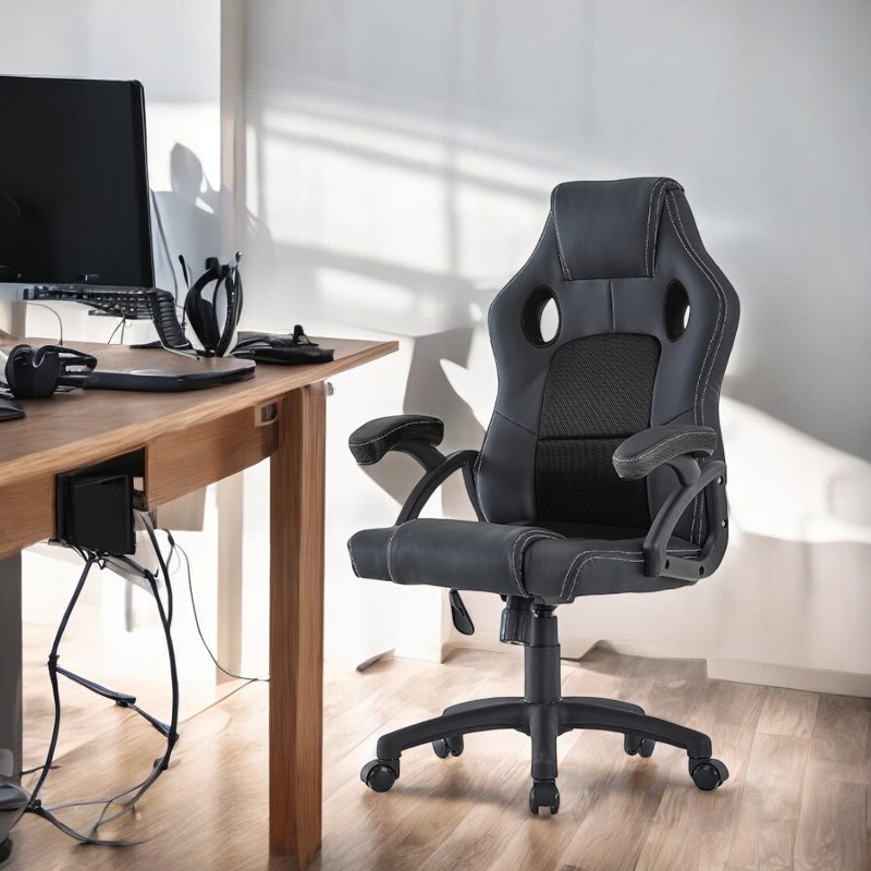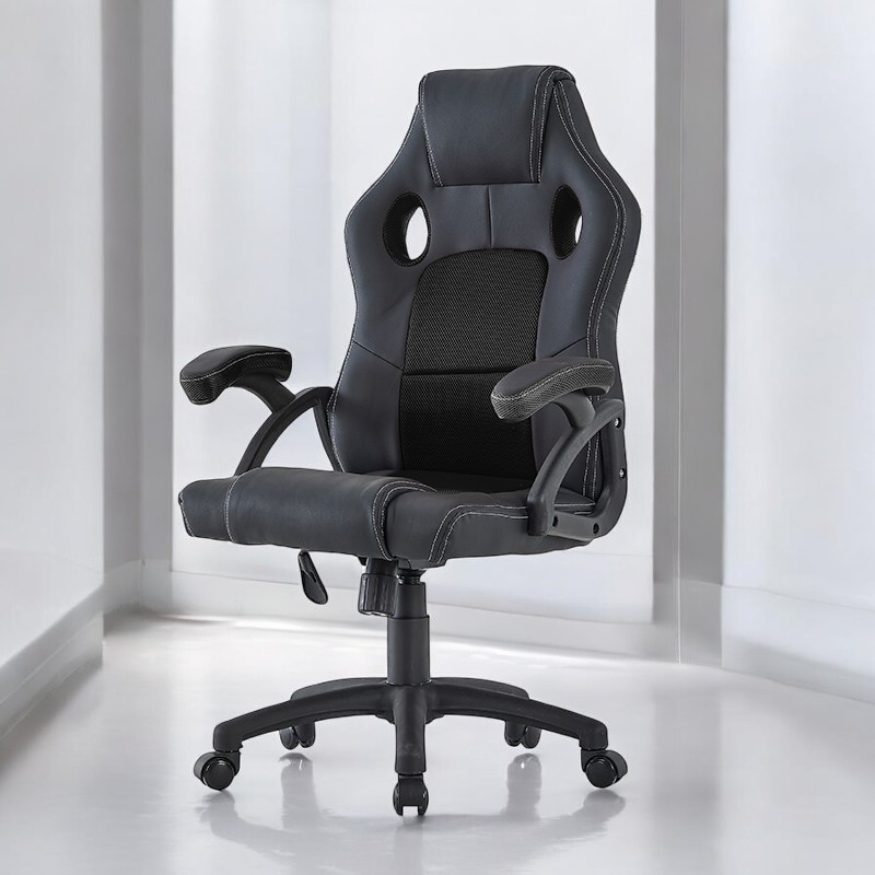 Bucura-te de confort in sesiunile lungi de joc sau lucru cu acest scaun gaming ergonomic, creat pentru sustinere corecta si libertate de miscare. Tapiteria combina PVC rezistent cu zona centrala din mesh respirabil, pentru ventilatie mai buna si mai putina supraincalzire.