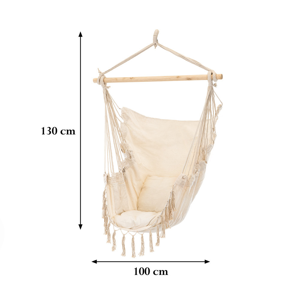 Scaun hamac suspendat Leziter Puerto bej, 130x100 cm, perne incluse