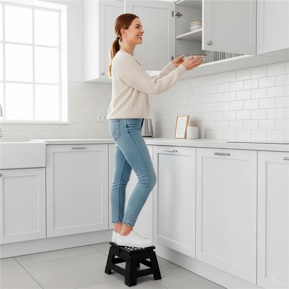 Alege un scaun înălțător pliabil practic și sigur pentru activitățile de zi cu zi din casă. Acest taburet antiderapant este realizat din PP rezistent, are o structură stabilă și suportă o greutate de până la 150 kg. Designul compact îl face ușor de folosit în baie, bucătărie, dressing, cameră sau chiar în deplasări.