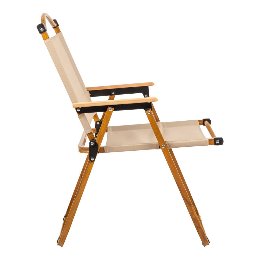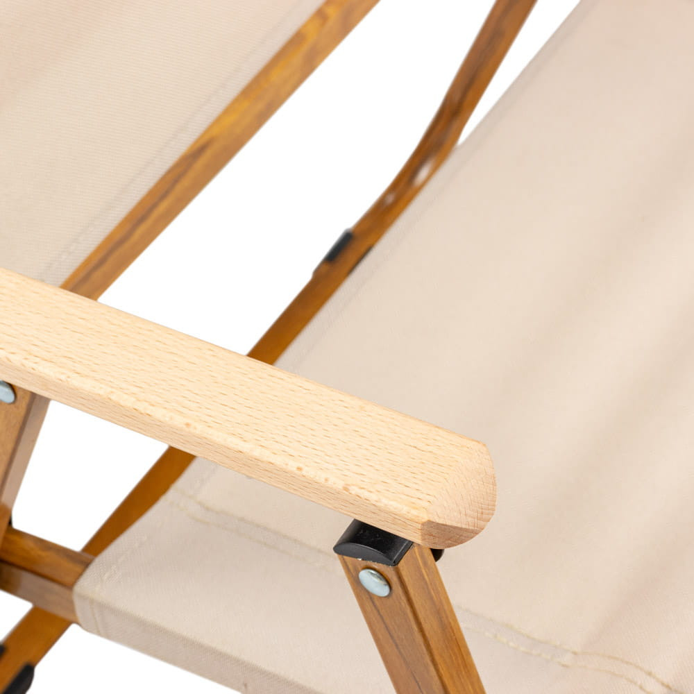 Scaun pliabil de camping Mirpol Drevo 78, bej, cu cotiere din lemn