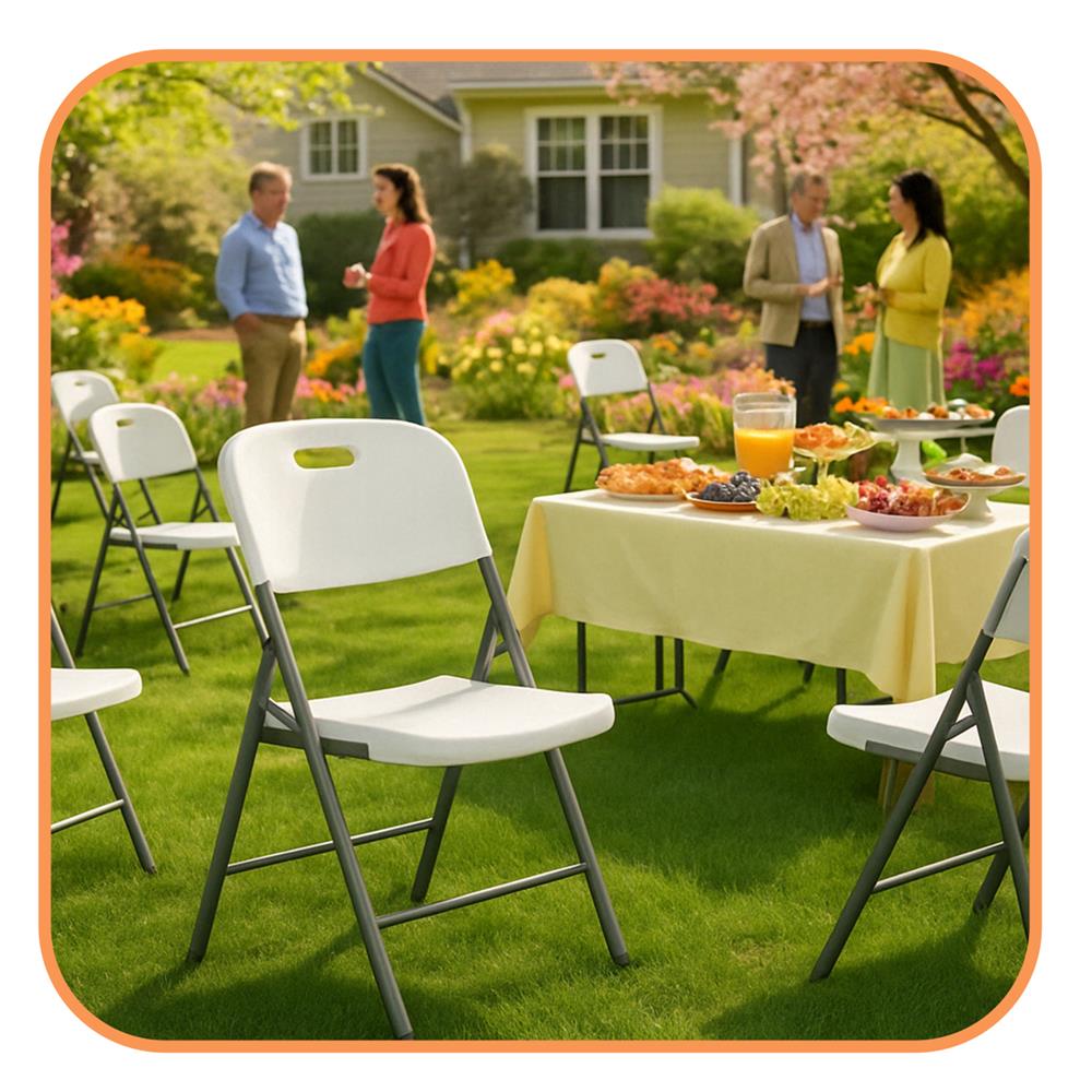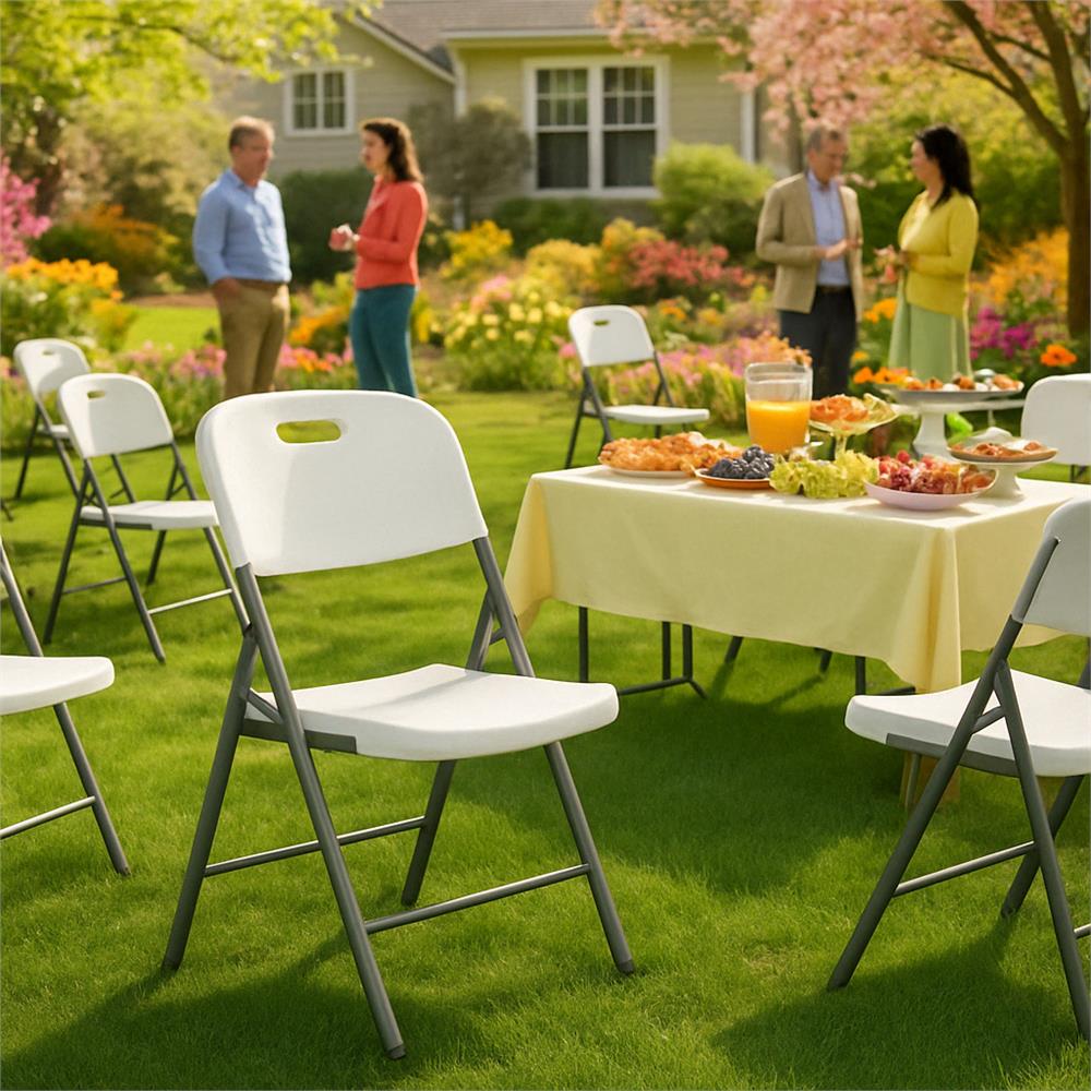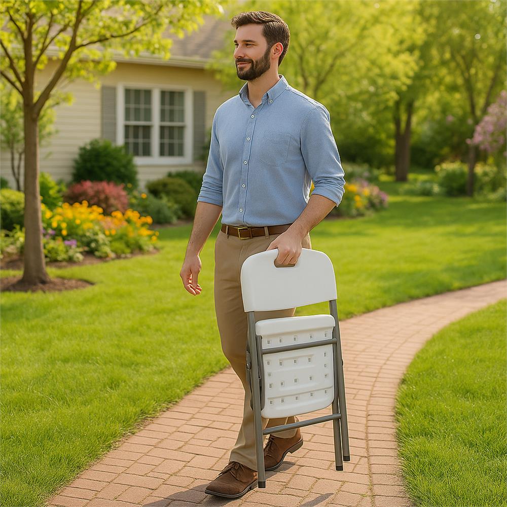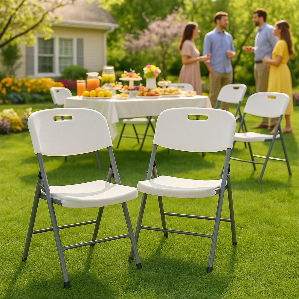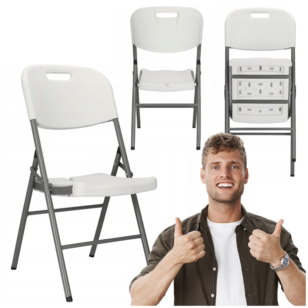 Scaun pliabil HDPE cu cadru metalic, pentru catering sau gradina, 46x53x86 cm, 150 kg, alb Household NewTrend