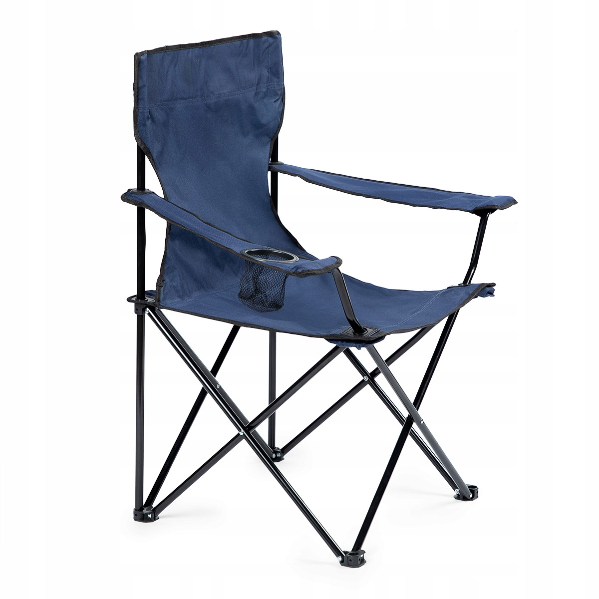 Scaun pliabil pentru camping si pescuit Sersimo, cu suport pahar, albastru