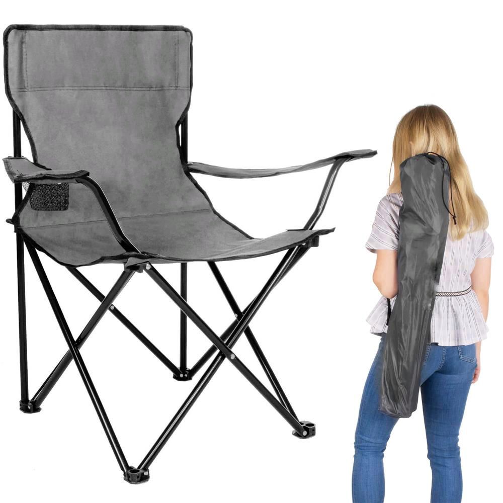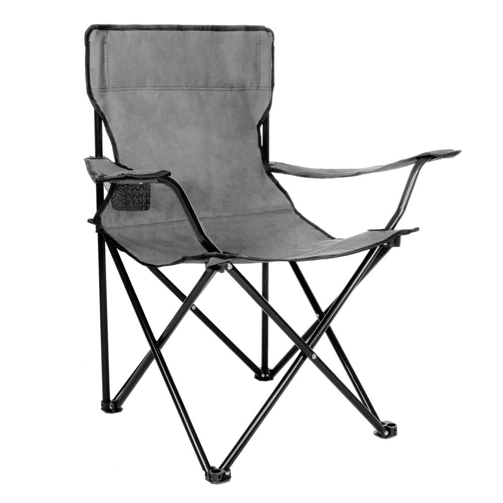 Scaun pliabil pentru camping si pescuit Sersimo, cu suport pahar, gri