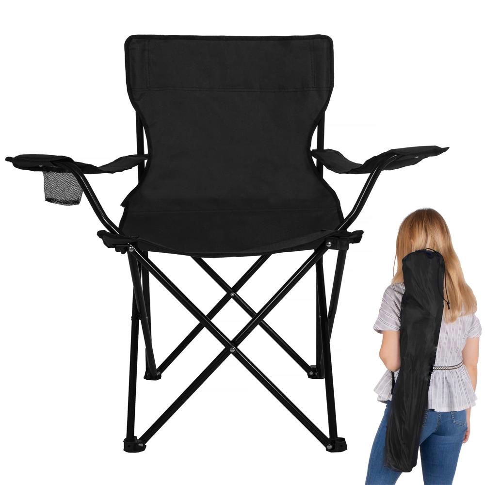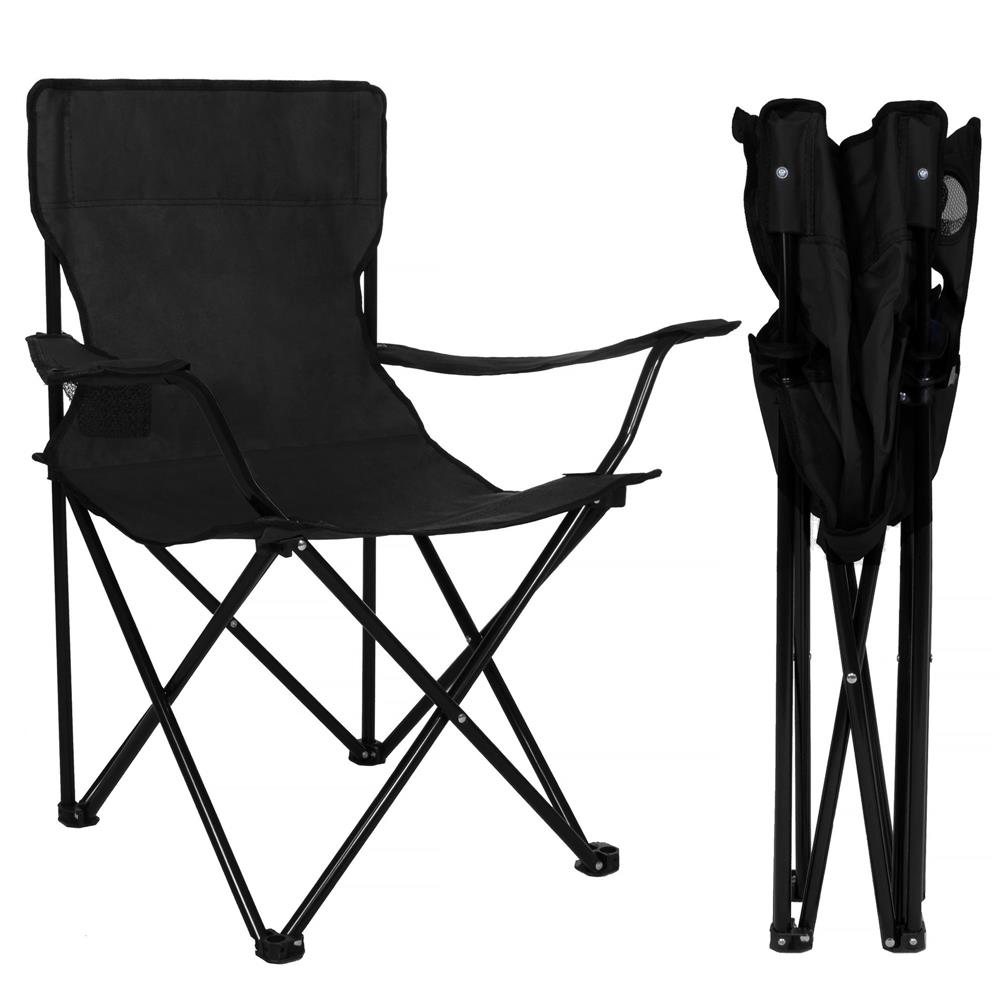 Scaun pliabil pentru camping si pescuit Sersimo, cu suport pahar, negru