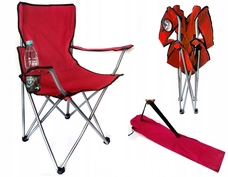 Scaun pliabil pentru camping si pescuit Sersimo, cu suport pahar, rosu