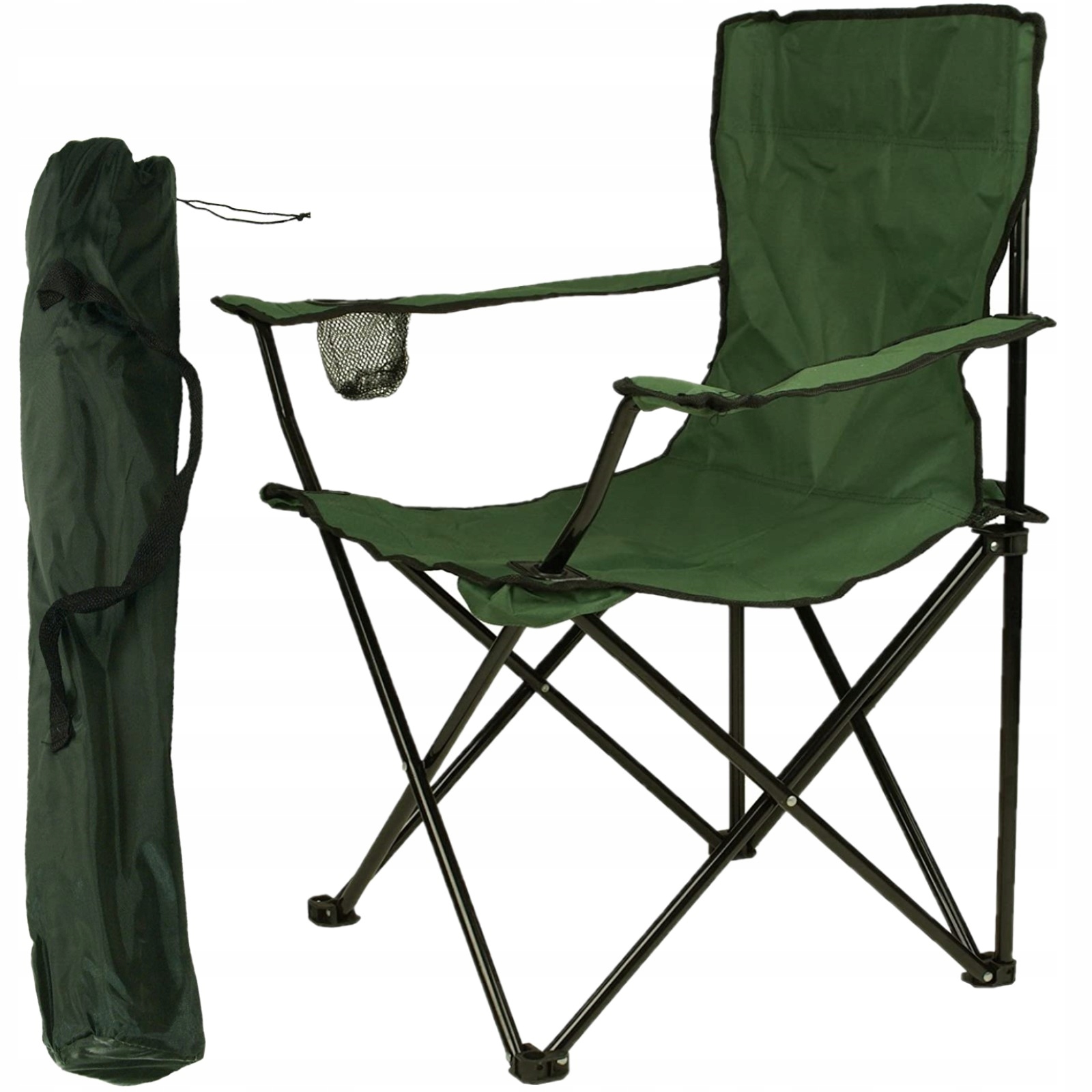 Scaun pliabil pentru camping si pescuit Sersimo, cu suport pahar, verde