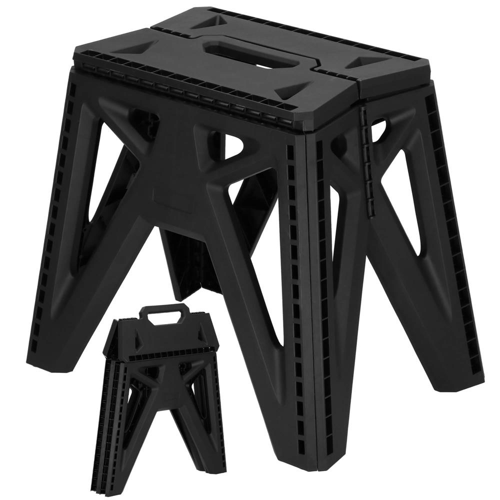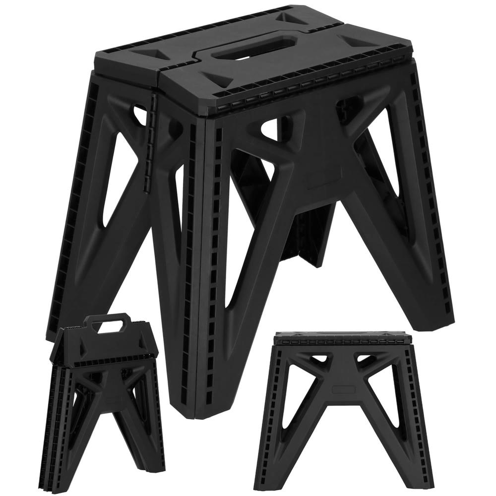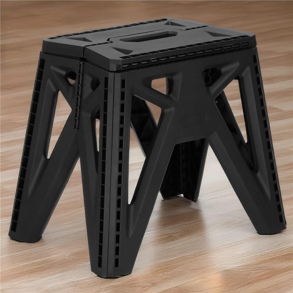 Scaun pliabil tip scară, compact, cu mâner, 150 kg, negru, 38x25x34 cm