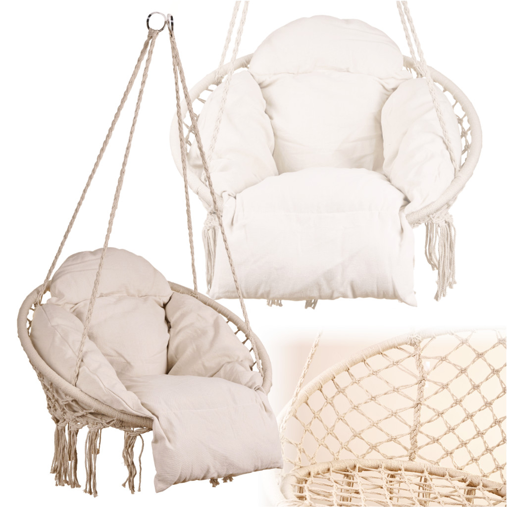 Scaun rotund tip leagan suspendat cu perna Confort Plus, casa sau gradina, ecru Household NewTrend