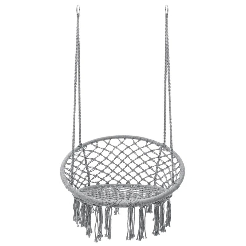 Scaun rotund tip leagan suspendat pentru casa sau gradina, cu franjuri, 150kg, gri Household NewTrend