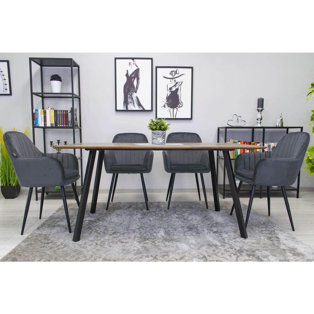 Scaun stil scandinav, Artool, Lugo, catifea, metal, gri si negru, 57.5x56.5x86.5 cm