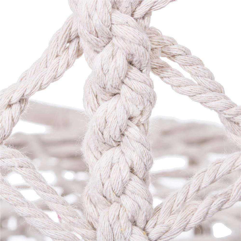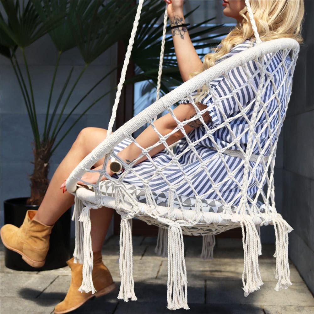 Datorita impletiturii din bumbac si spatarului bine conturat, scaunul ofera sustinere placuta si o atmosfera relaxanta, fie ca il montezi in living, pe terasa, balcon sau in gradina. Sistemul de prindere permite montaj in 1 sau 2 puncte, in functie de spatiul disponibil si preferinte.