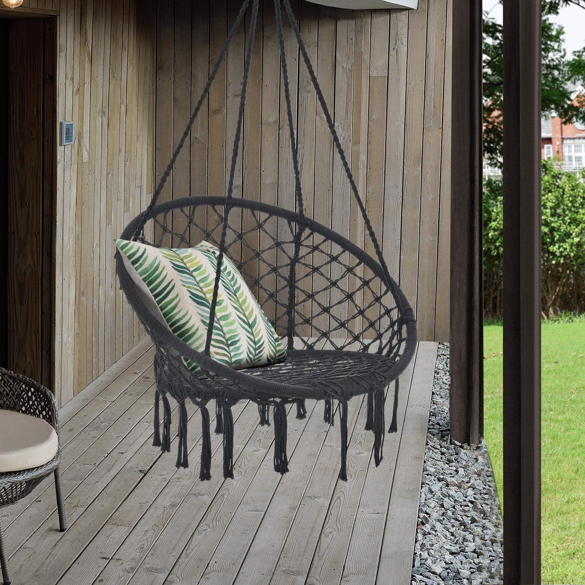 - hamac scaun sustinut de 4 franghii si 2 inele otel