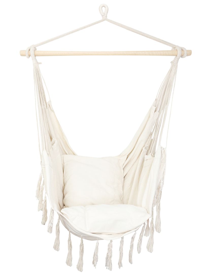 Scaunul suspendat tip hamac Greko este alegerea ideala pentru momente de relaxare in gradina, pe terasa, balcon sau chiar in interiorul locuintei. Designul sau in nuanta bej natur se integreaza usor in decoruri moderne, boeme sau rustice, iar forma confortabila il face perfect pentru odihna, lectura sau timp petrecut in aer liber.