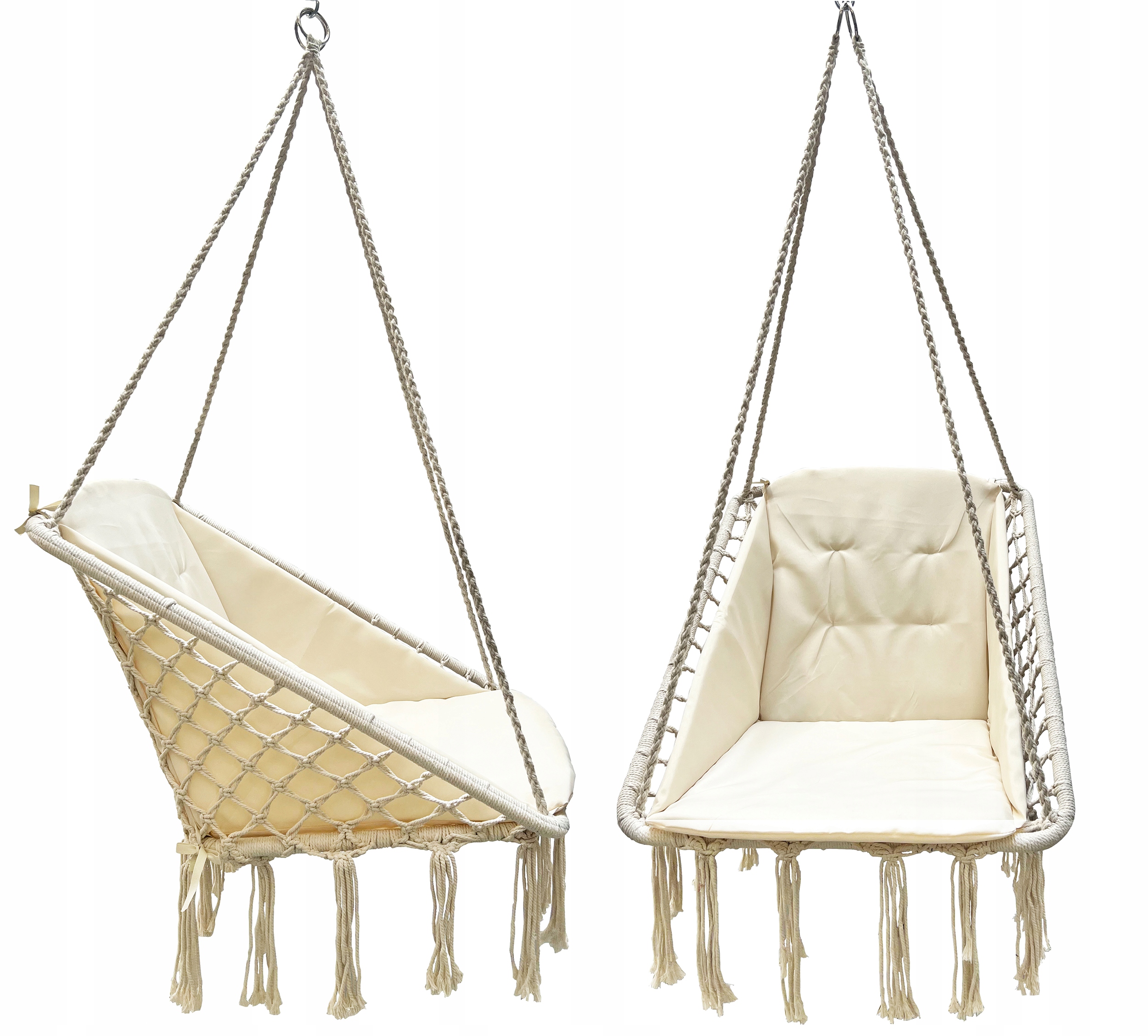 Transforma orice colt de relaxare cu acest scaun suspendat tip leagan, ideal pentru interior sau exterior. Designul sau elegant, in nuanta bej, se potriveste perfect pe terasa, balcon, in gradina sau chiar in living ori camera copiilor. Perna moale si spatarul confortabil ofera o sustinere placuta, iar structura rezistenta il face potrivit atat pentru adulti, cat si pentru copii.