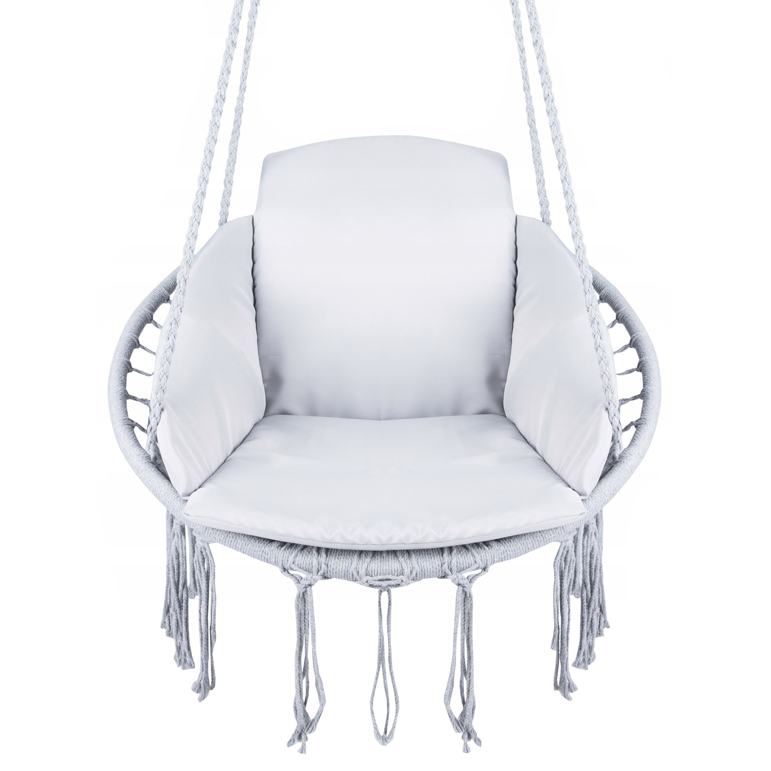 Utilizare recomandată: montează scaunul într-un loc sigur, pe un suport sau în tavan, folosind sistemele de prindere potrivite. Este excelent pentru relaxare în living, camera copilului, pe terasă sau în grădină. Perna se poate spăla manual pentru întreținere ușoară.