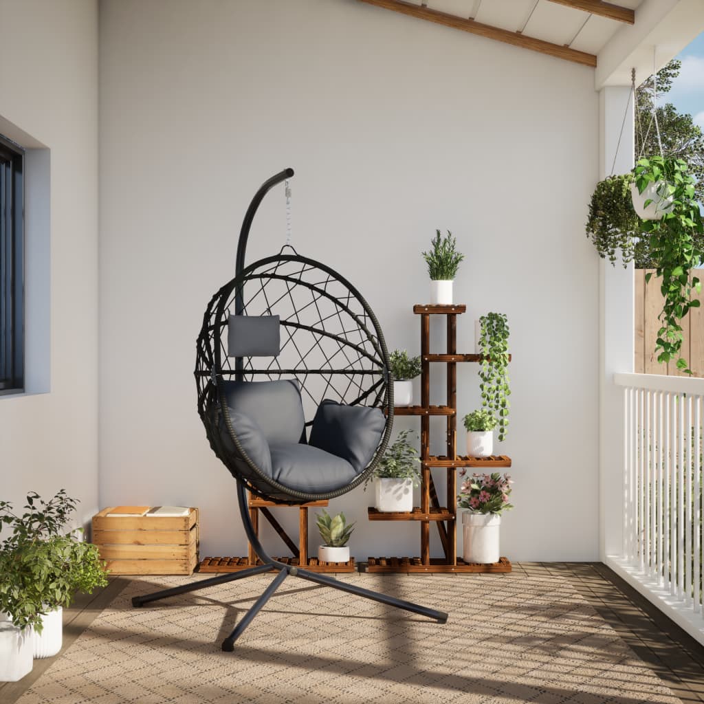 Scaun suspendat tip ou, cu suport, antracit, ratan și oțel GartenMobel Dekor