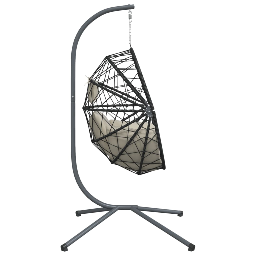 Scaun suspendat tip ou, cu suport, bej, ratan și oțel GartenMobel Dekor