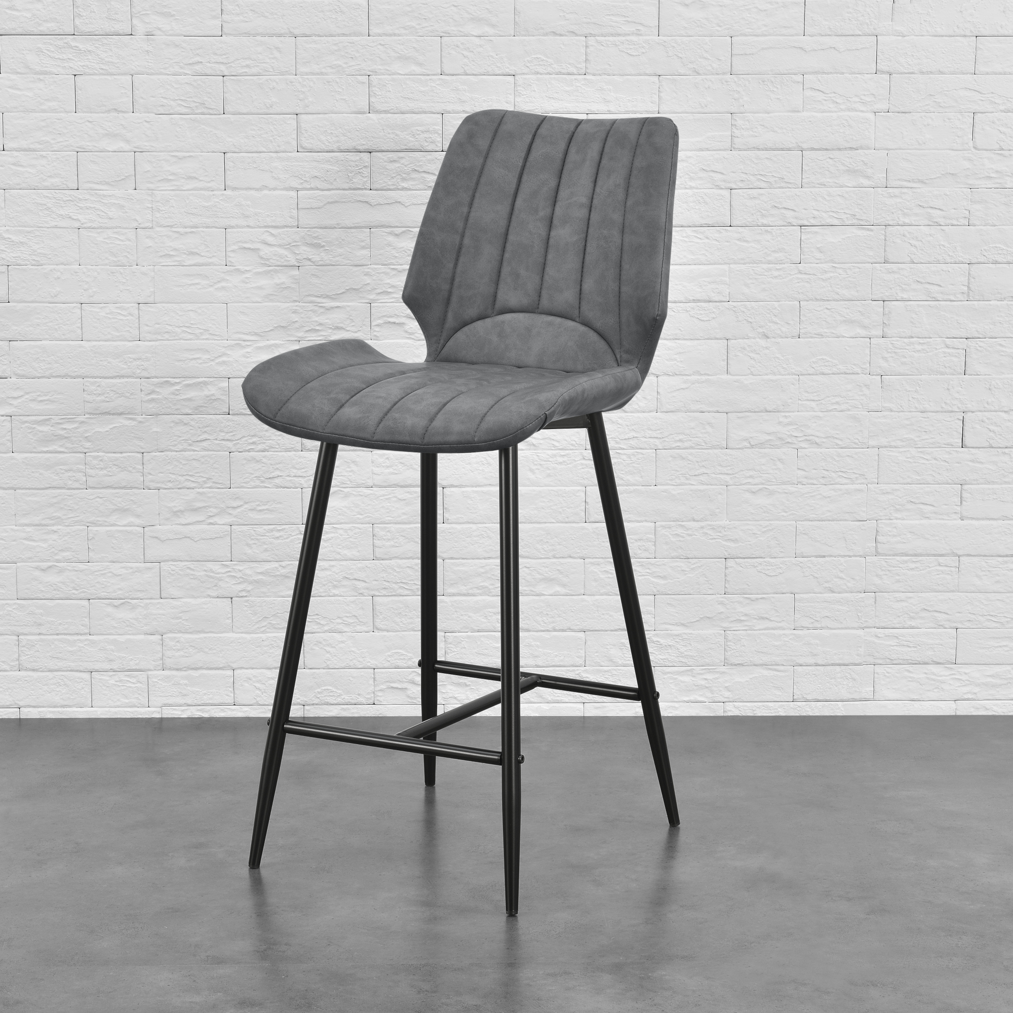 Scaune bar Noni 2 set 2 buc metal/imitatie piele gri inchis [en.casa] HausGarden Leisure