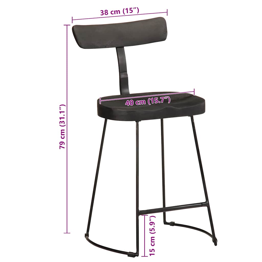 Scaune de bar 2 buc Negru 49x43x79 cm Lemn masiv Mango GartenMobel Dekor