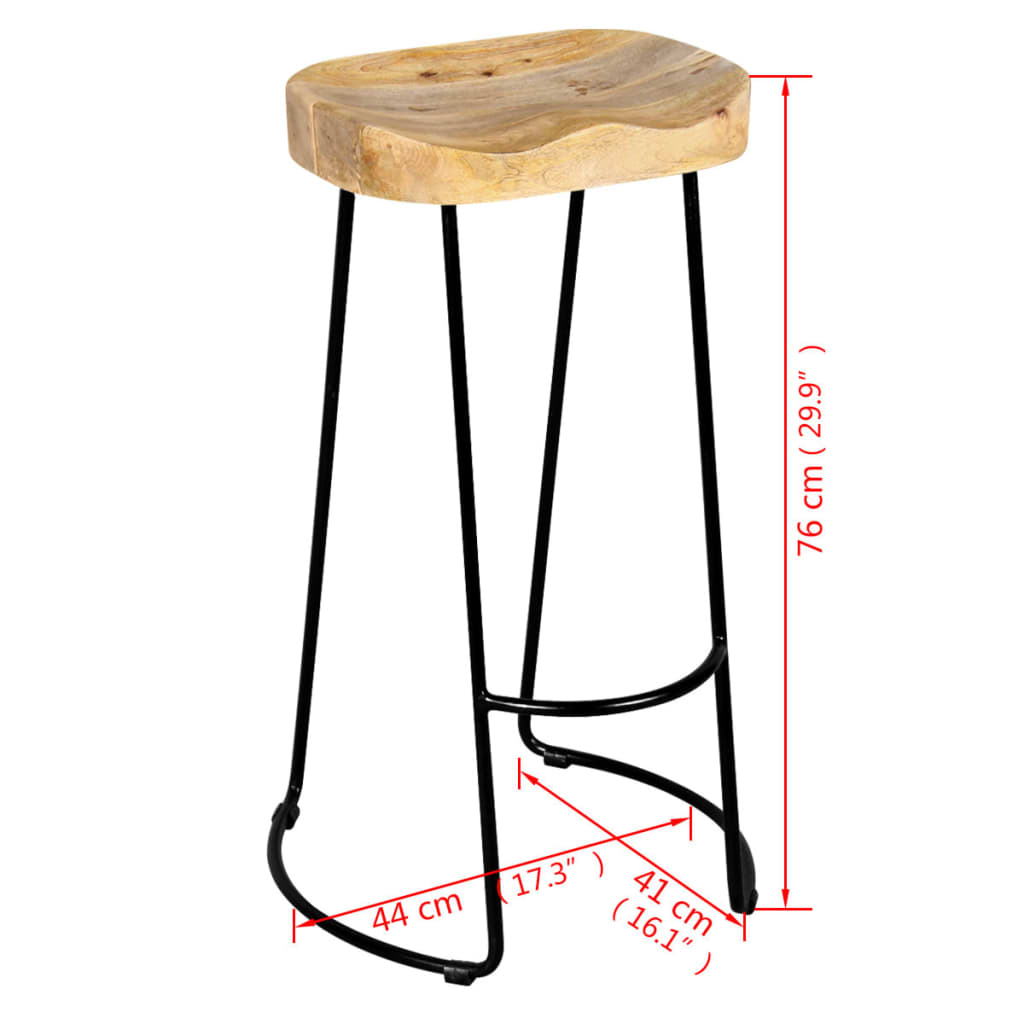 Scaunele pentru bar sunt realizate manual din lemn de mango masiv, care este solid, stabil, durabil și frumos, iar măiestria fabricației aduce un plus stilului lor retro spectaculos. Fiecare pas al procesului de executare este realizat cu cea mai mare grijă, fie că e vorba de lustruire, vopsire sau lăcuire. Cadrele sunt realizate din fier durabil pentru a contribui la robustețea scaunelor. Măiestria fabricației și granulația frumoasă a lemnului fac ca fiecare piesă de mobilier să fie unică și ușor diferită de cealaltă.