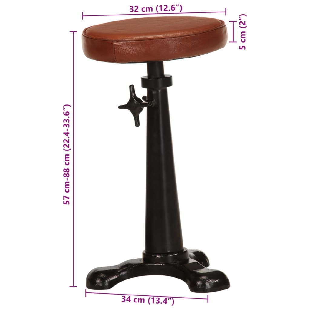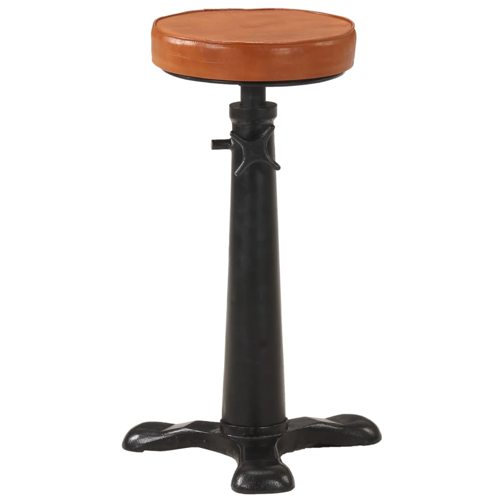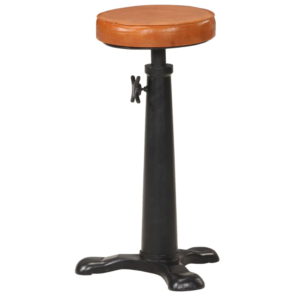 Scaune de bar, 2 buc., maro, piele naturală și fontă GartenMobel Dekor