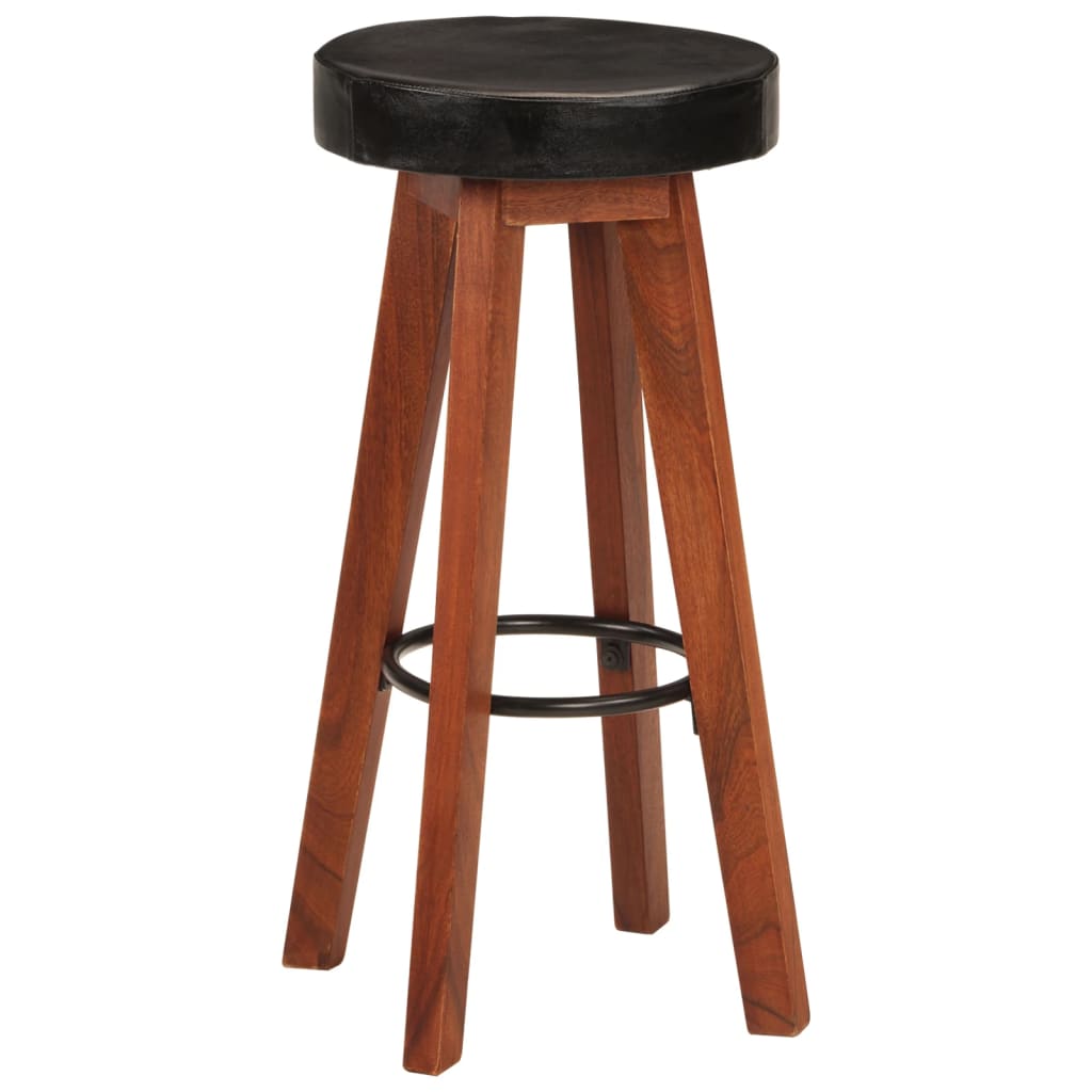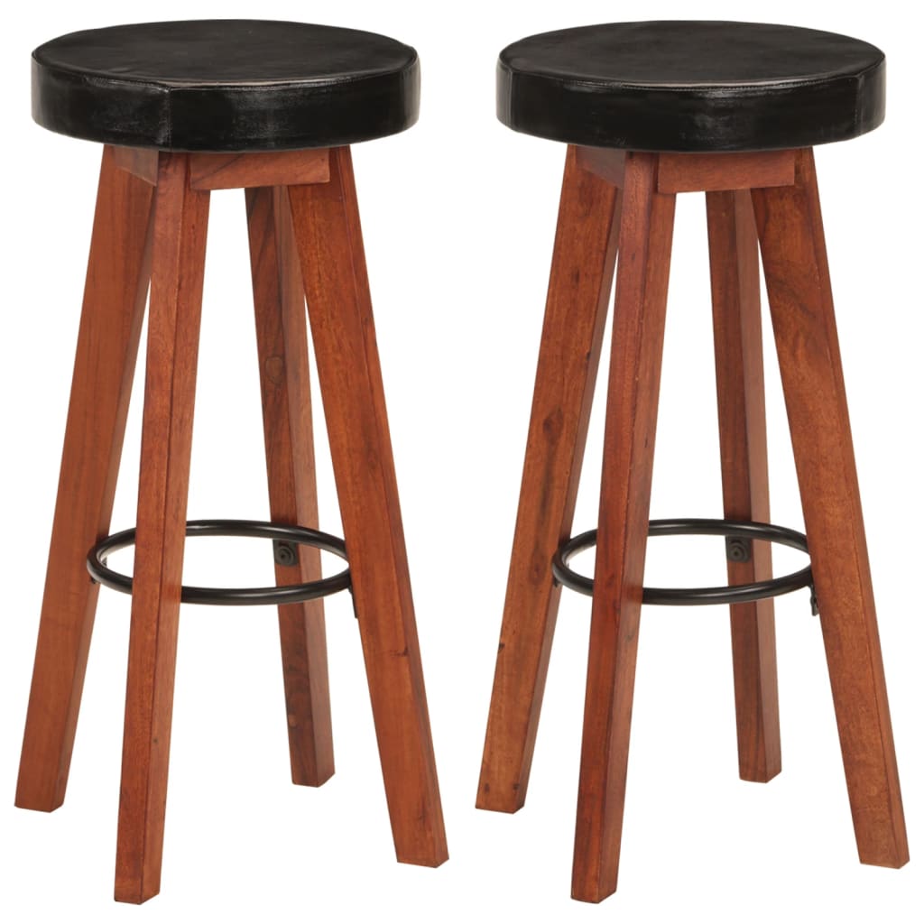 Scaune de bar, 2 buc., piele naturală și lemn masiv de acacia GartenMobel Dekor