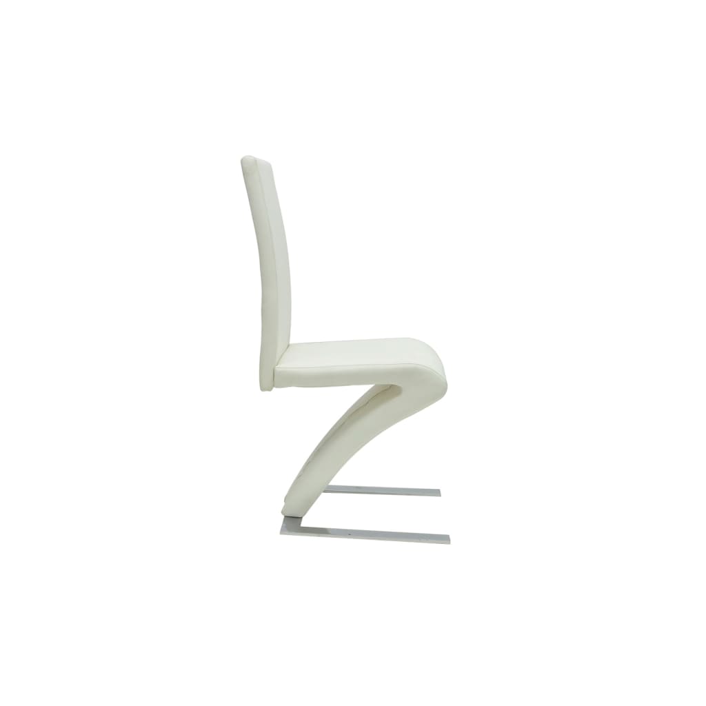 Construcția sa durabilă vă va asigura mulți ani de serviciu . În plus, forma lor unică în zigzag și finisajul alb fin va aduce aceste scaune în centrul atenției. Scaunul are șezutul și spătarul proiectate ergonomic pentru a vă garanta confort la ședere.