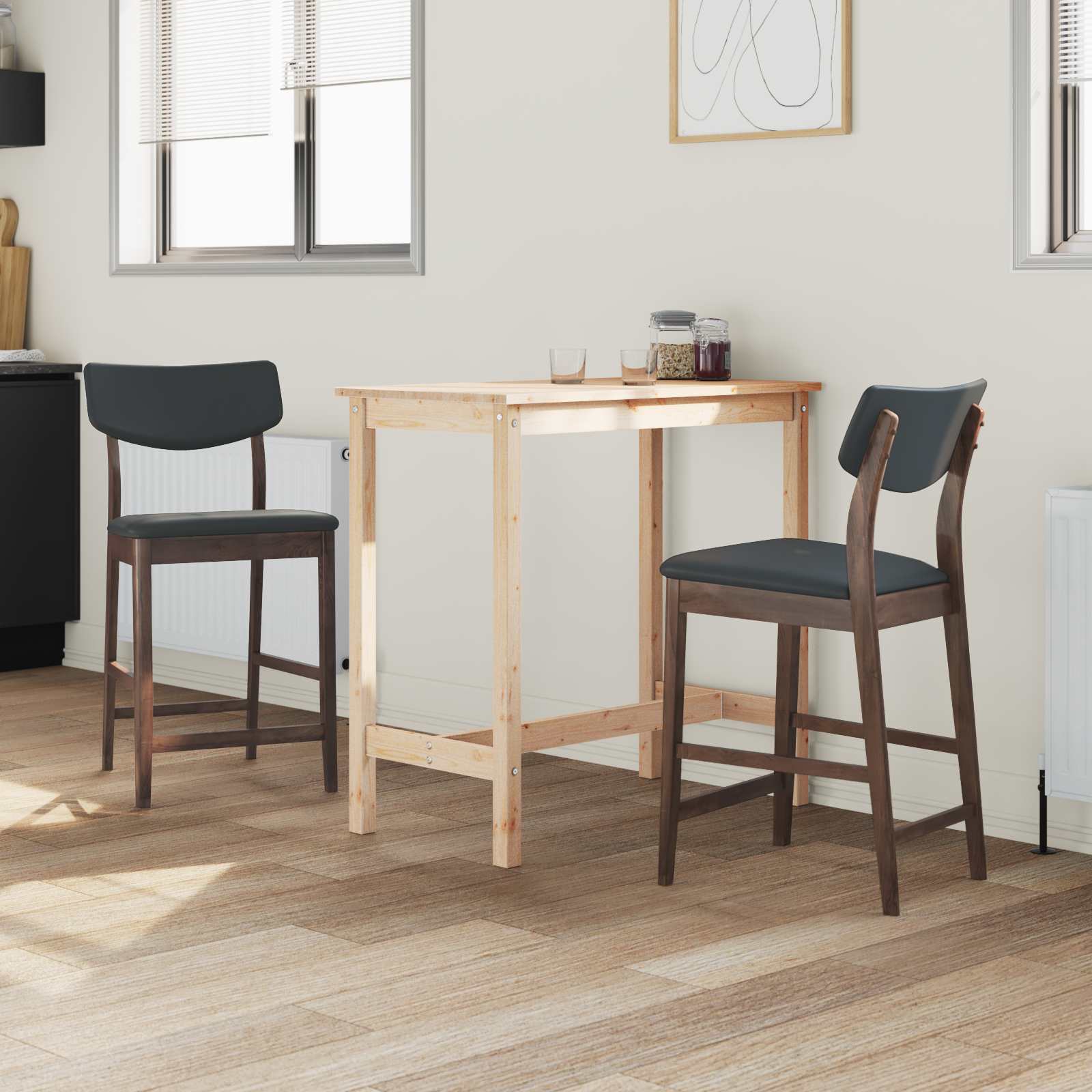 • Materiale premium: Făcute din lemn masiv de cauciuc, scaunele sunt robuste și durabile. Finisajul natural aduce o notă de eleganță, asigurându-te că îți vei putea folosi scaunele mulți ani de acum înainte.