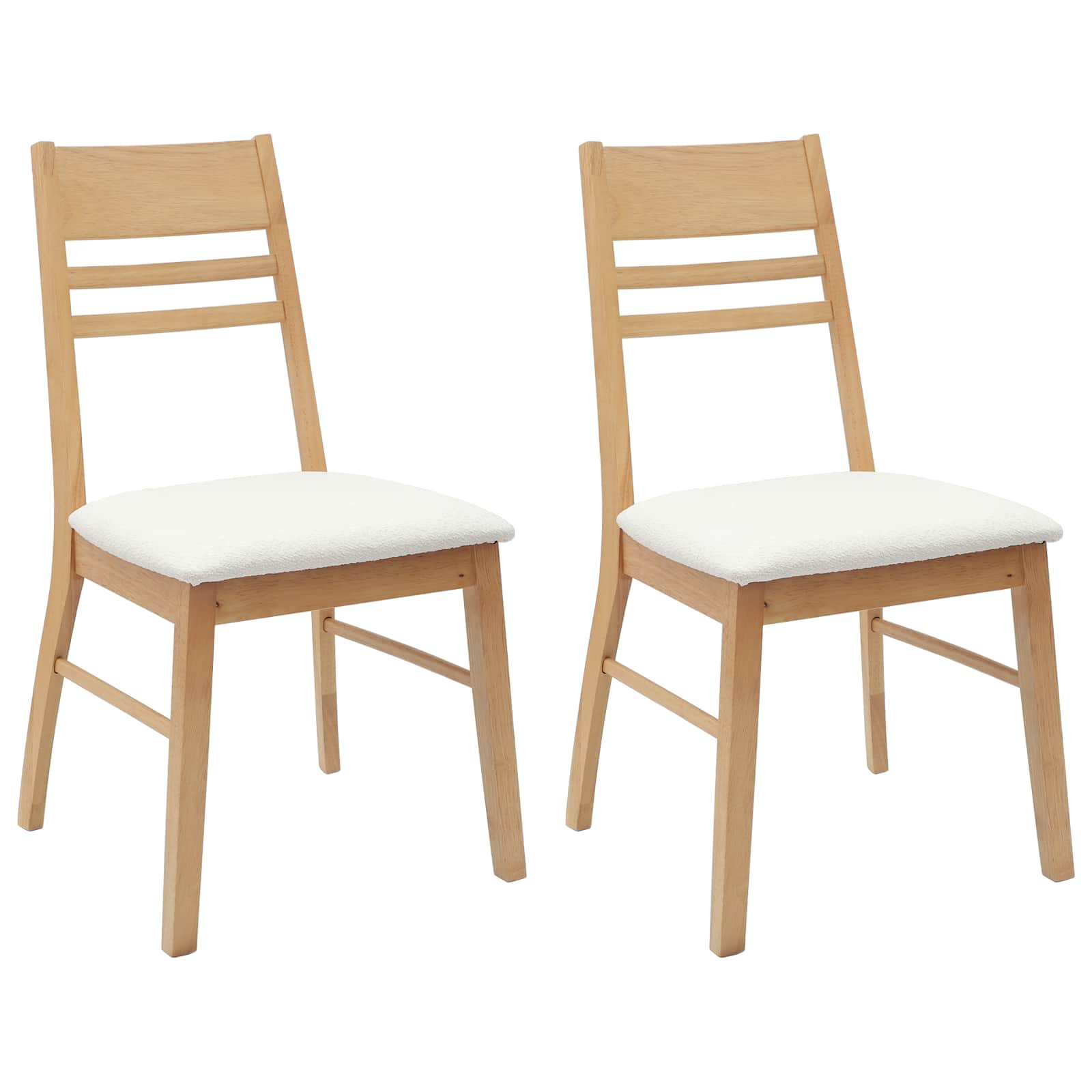 • Cadru modern din lemn de cauciuc Construite integral din lemn masiv de cauciuc, aceste scaune sunt durabile și aspectuoase. Culoarea caldă a lemnului se potrivește cu diferite teme de sufragerie, aducând eleganță și stabilitate pentru utilizarea zilnică.