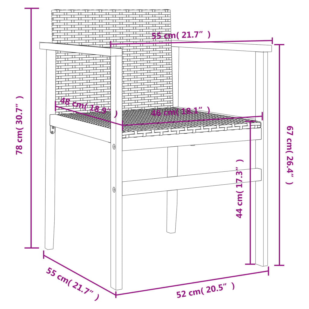 - Material: Ratan PE, lemn masiv de acacia cu finisaj de ulei natural, oțel vopsit electrostatic