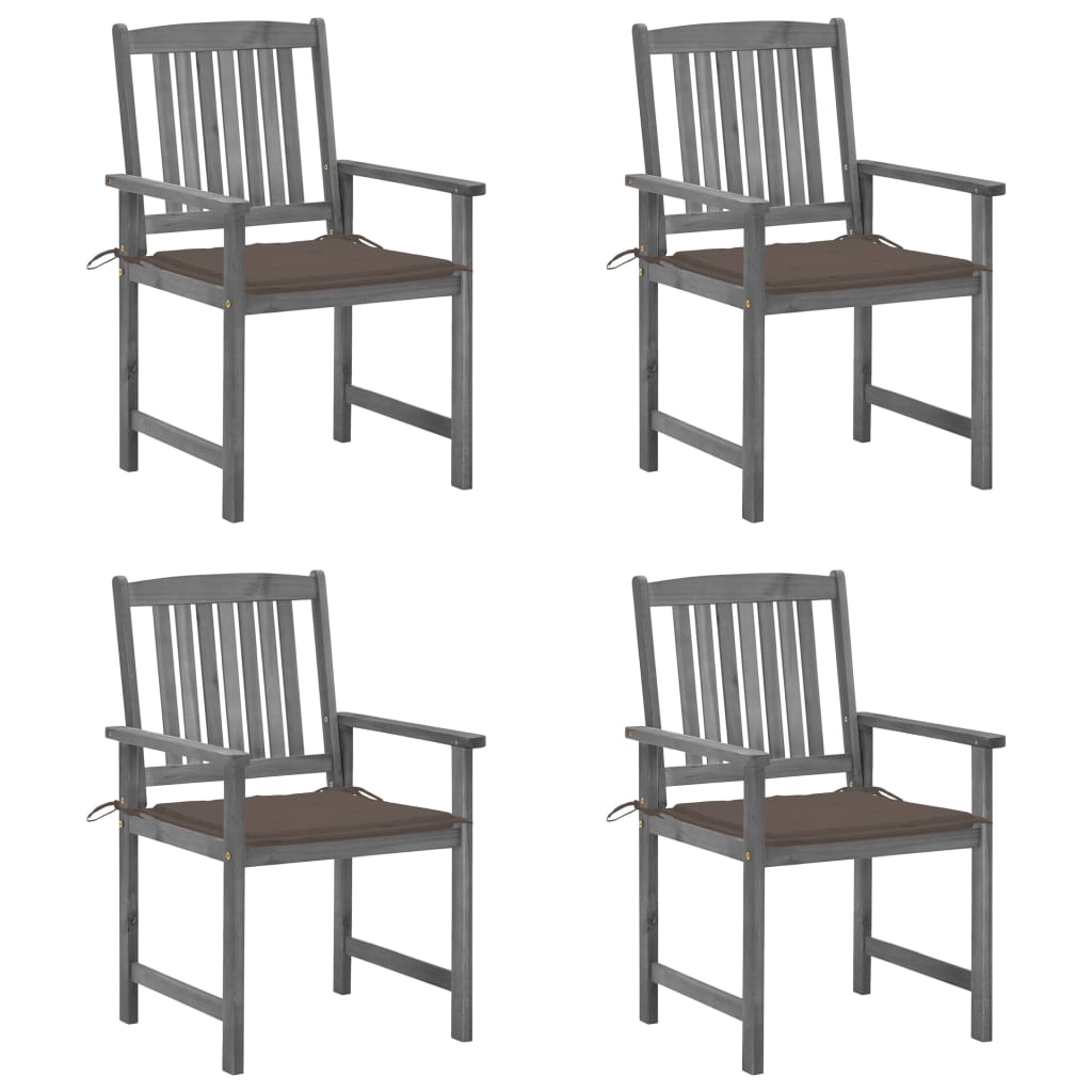 Scaune de grădină cu perne, 4 buc., gri, lemn masiv acacia GartenMobel Dekor