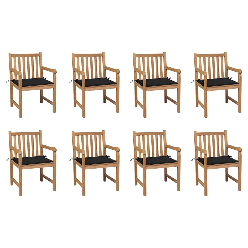 Scaune de grădină cu perne negre, 8 buc., lemn masiv de tec GartenMobel Dekor
