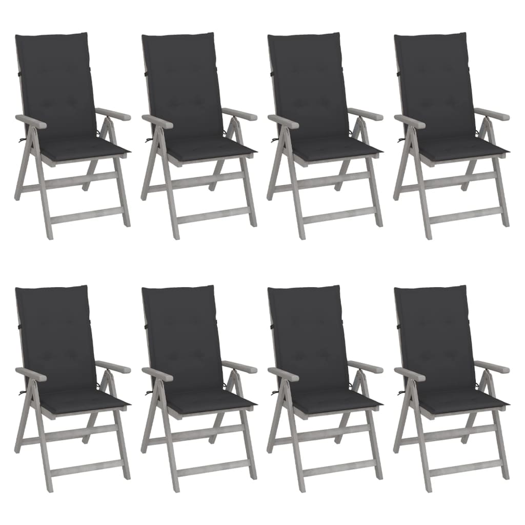 Scaune de grădină rabatabile cu perne, 8 buc., gri, lemn acacia GartenMobel Dekor