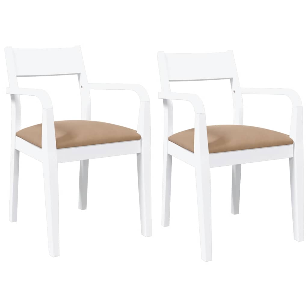 Scaune de sufragerie cu perne 2 buc cauciuc din lemn masiv alb GartenMobel Dekor