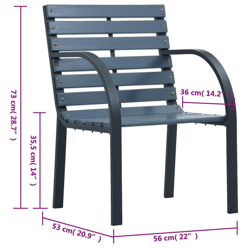 Descriere Scaune grădină 2 buc., gri, lemn