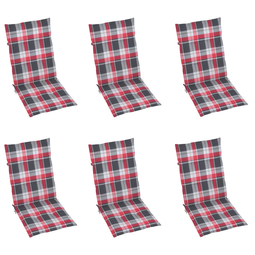 Scaune grădină cu perne, 6 buc, roșu, carouri, lemn masiv tec GartenMobel Dekor