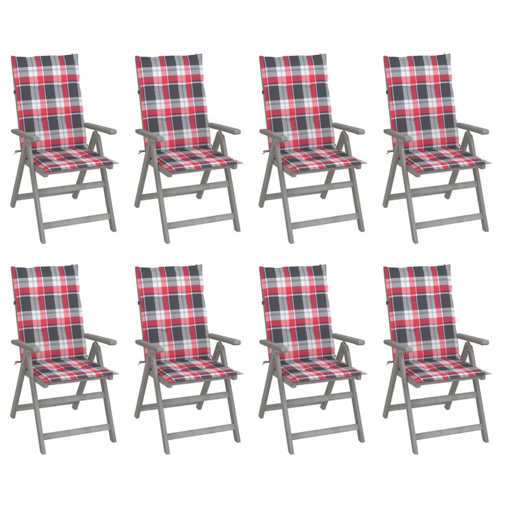 Scaune grădină rabatabile cu perne 8 buc. gri lemn masiv acacia GartenMobel Dekor