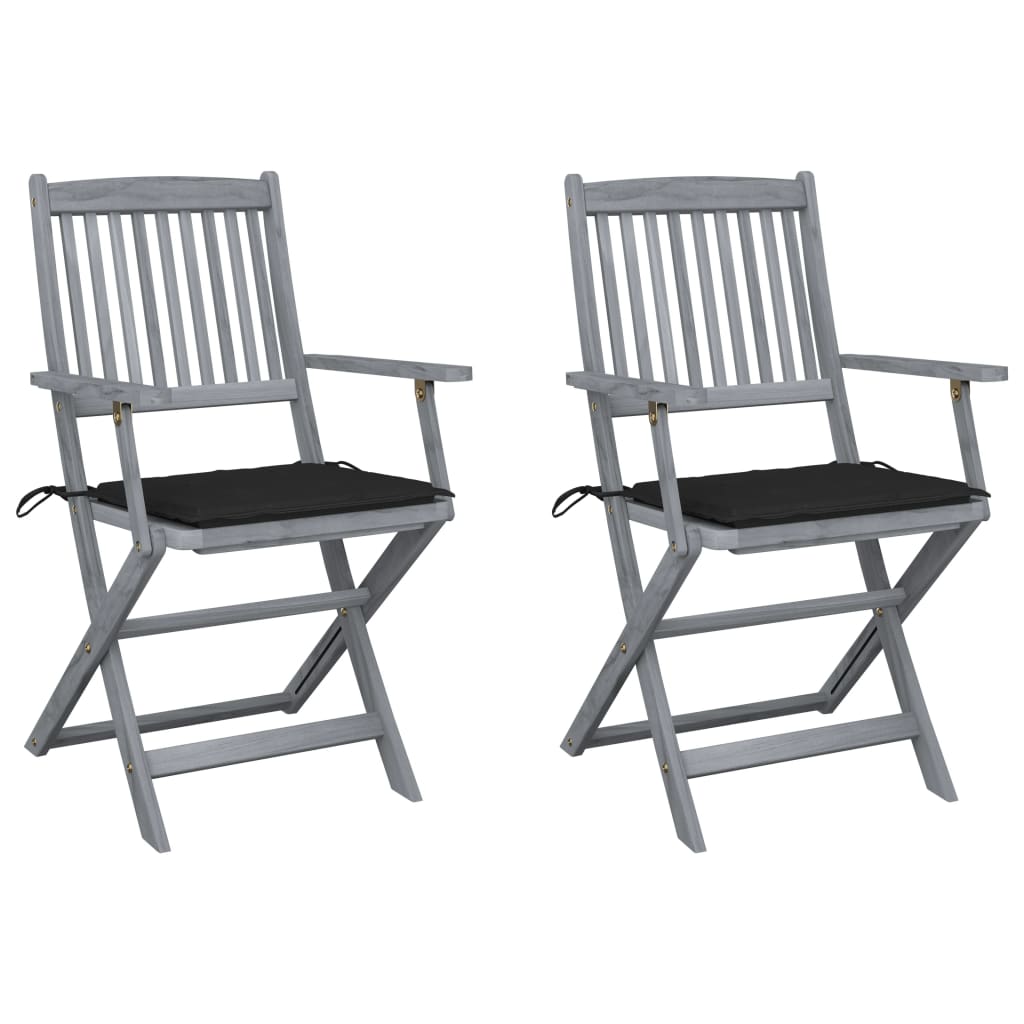 Scaune pliabile de exterior cu perne, 2 buc., lemn masiv acacia GartenMobel Dekor