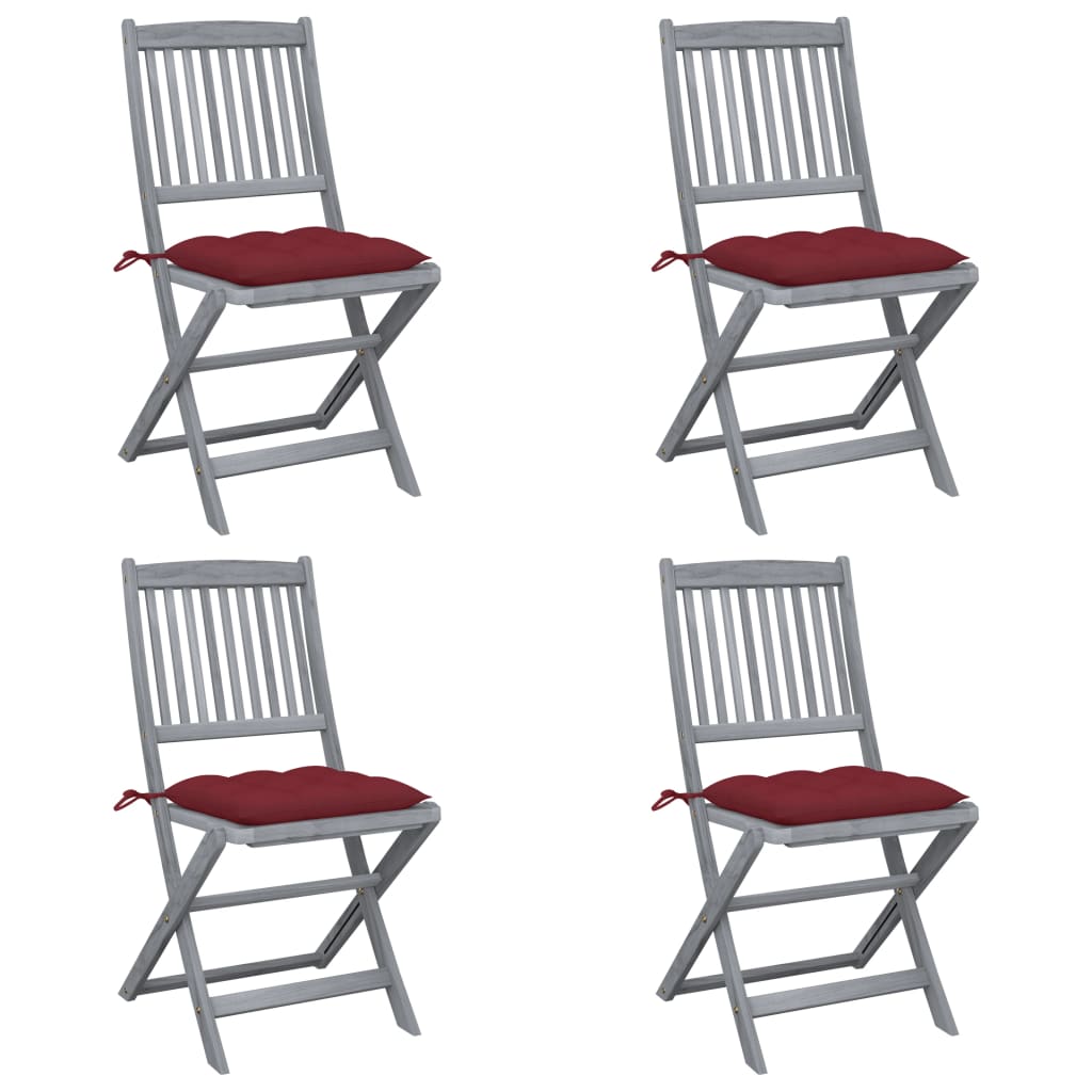 Scaune pliabile de exterior, cu perne, 4 buc. lemn masiv acacia GartenMobel Dekor